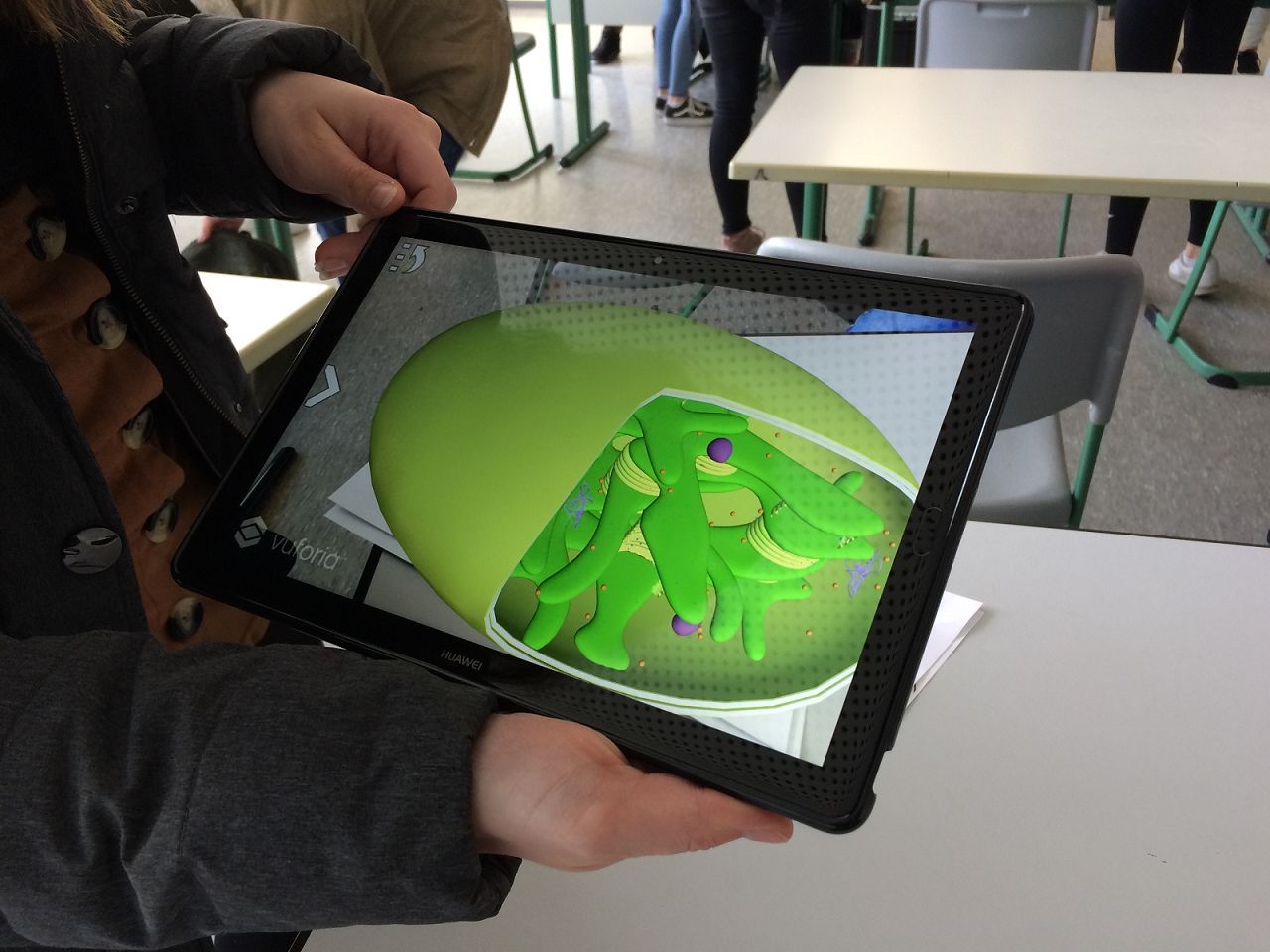 Im Rahmen seiner Promotionsarbeit erforscht Carsten Hoffmann an der TU Kaiserslautern die Lernwirksamkeit der Augmented Reality. Insofern wurde der Biologie- (Klasse 10b Herr Jung) und Erdkundeunterricht (LK 11 Herr Szabo) zur universitären Forschungsstätte. Die Schülerinnen und Schüler erlebten einerseits die Komplexität empirischer Forschung und konnten andererseits moderne Didaktik erleben, welche vielleicht im Jahr 2030 allgegenwärtig im Schulalltag sein wird.
