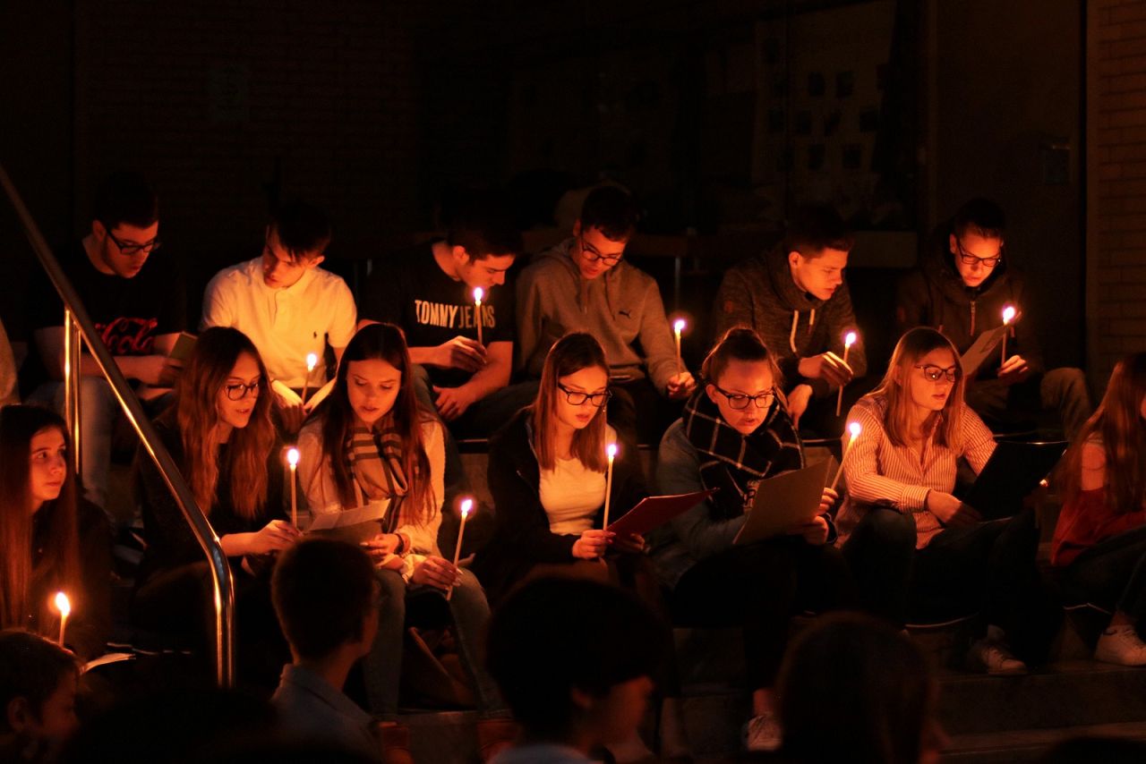 Mit dem Thema Vorfreude begann Anne Bernardy-Schmitz: Sie stellte, unterstützt von Schülern ihrer 7. Klasse, dar, worauf sich unsere Schüler freuen und was sie sich und anderen wünschen. Googelt man den Begriff Vorfreude, so informiert einen Wikipedia u. A., es handele sich um eine Emotion, welche durch die Erwartung eines zukünftigen positiven Ereignisses gekennzeichnet sei. Darauf aufbauend hob Jannika Reichertz hervor, dass die Vorfreude als solche einen großen Wert habe und in der Adventszeit in Form von geschmückten Wohnungen, Plätzchen, Weihnachtspullis und Zeit mit der Familie oder mit Freunden spürbar werde. Hildegard Poschmann las aus dem Brief des Apostels Paulus an die Philipper zum Thema Freude. Sie zitierte Paulus, der, gleichwohl er inhaftiert war, zur Freude aufrief und predigte, diese Freude zu jeder Zeit, nicht nur in der Weihnachtszeit zu empfinden: „Freut euch!“. Juliane Petry hob hervor, dass die Adventszeit nicht lediglich eine Zeit für Vorfreude, sondern ebenso eine Zeit der Wünsche sei. Gingen diese Wünsche nicht in Erfüllung, sei Gottes Liebe immer zu spüren.