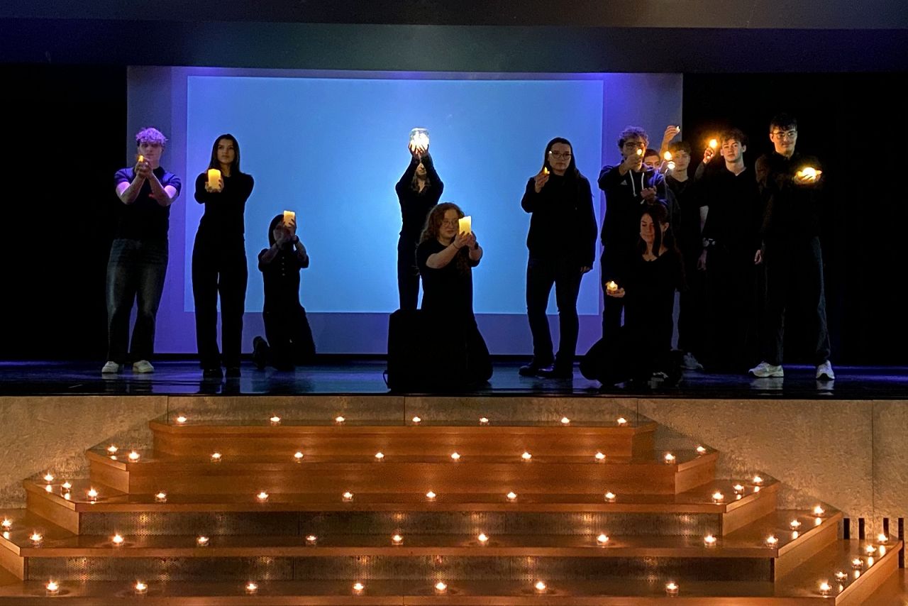 Der letzte Schultag des Jahres ist kein Schultag wie jeder andere: Am Morgen wurde die gesamte Schulgemeinschaft durch ein stimmungsvolles Lichtermeer aus Kerzen in Empfang genommen. Die Religionslehrerinnen und -lehrer sorgten traditionell durch ein geschicktes Arrangement von Impulsen, Spiel- und Textbeiträgen für einen (denk-)würdigen Jahresabschluss.