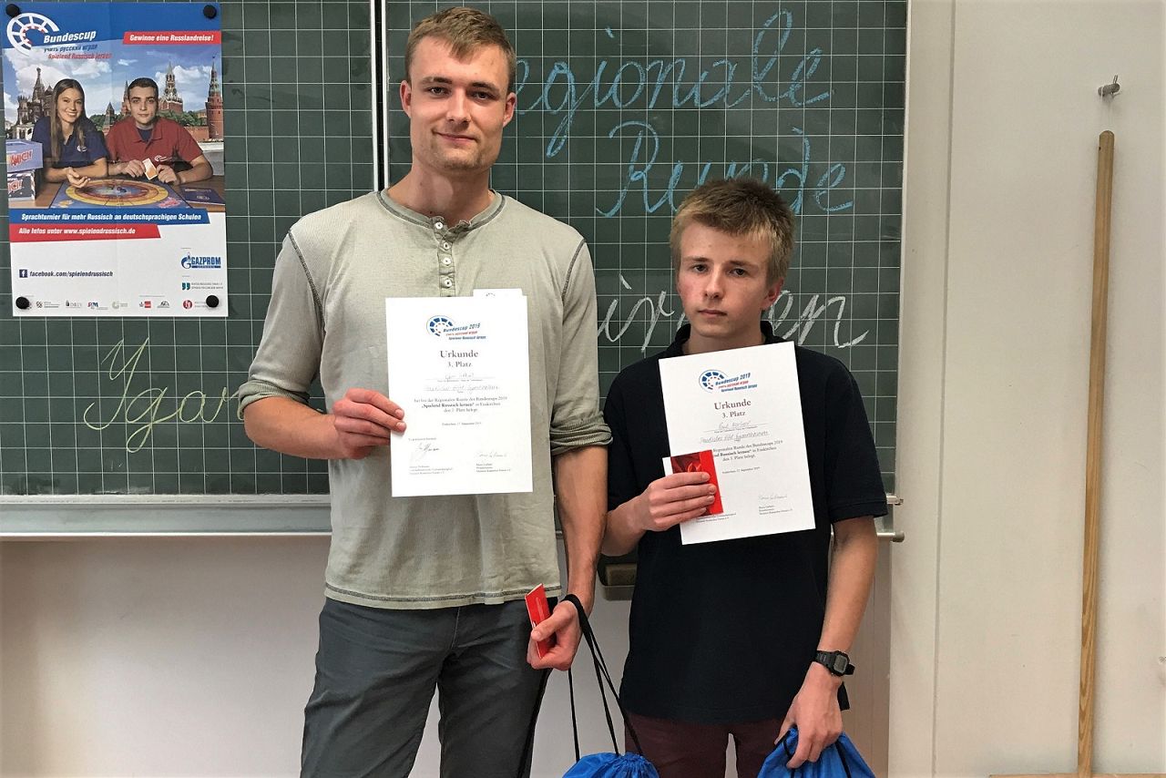 Vokabeln pauken kann anstrengend sein – es kann aber auch Spaß machen. Das war das Motto der regionalen Runde des bundesweiten Sprachwettbewerbes Bundescup „Spielend Russisch lernen“, der am 27. September an der Staatlichen Marienschule in Euskirchen stattfand. Unsere Kandidaten hatten bereits in der Vorrunde ihre russischen Sprachkenntnisse erfolgreich unter Beweis gestellt und traten in der regionalen Runde gegen sieben andere Schülermannschaften aus Hürth, Euskirchen, Mechernich, Köln, Kerpen (NRW), Wied und Simmern an. Sie spielten um den Einzug ins Finale und genossen gleichzeitig die familiäre Atmosphäre sowie die Vielfalt der russischen Küche beim Mittagessen.