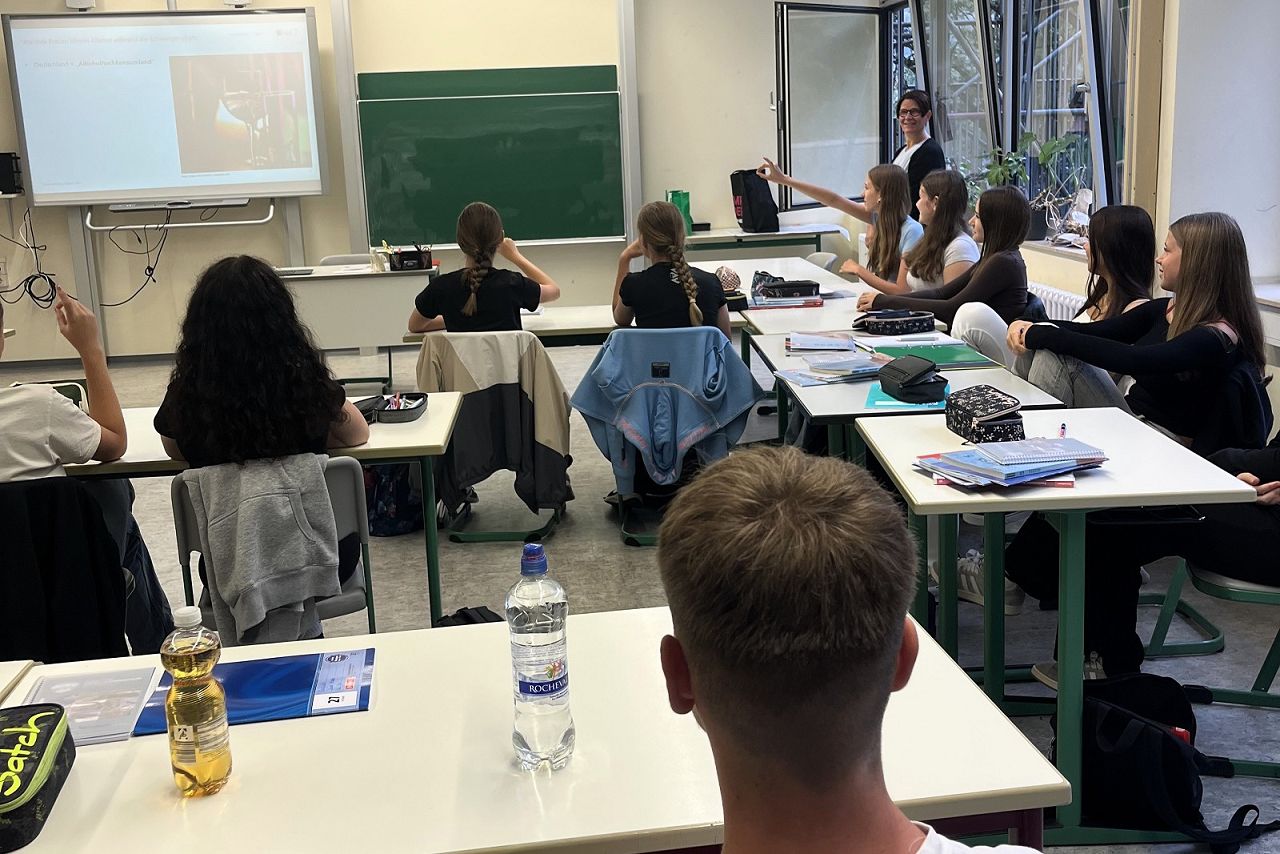 Alten informierte dabei die Neuntklässlerinnen und Neuntklässler über die biologische Wirkung von Alkohol (der ein Zellgift ist) – insbesondere in der Schwangerschaft auf das Ungeborene: FASD (Fetal Alcohol Spectrum Disorder), die durch Alkohol ausgelösten Erkrankungen.