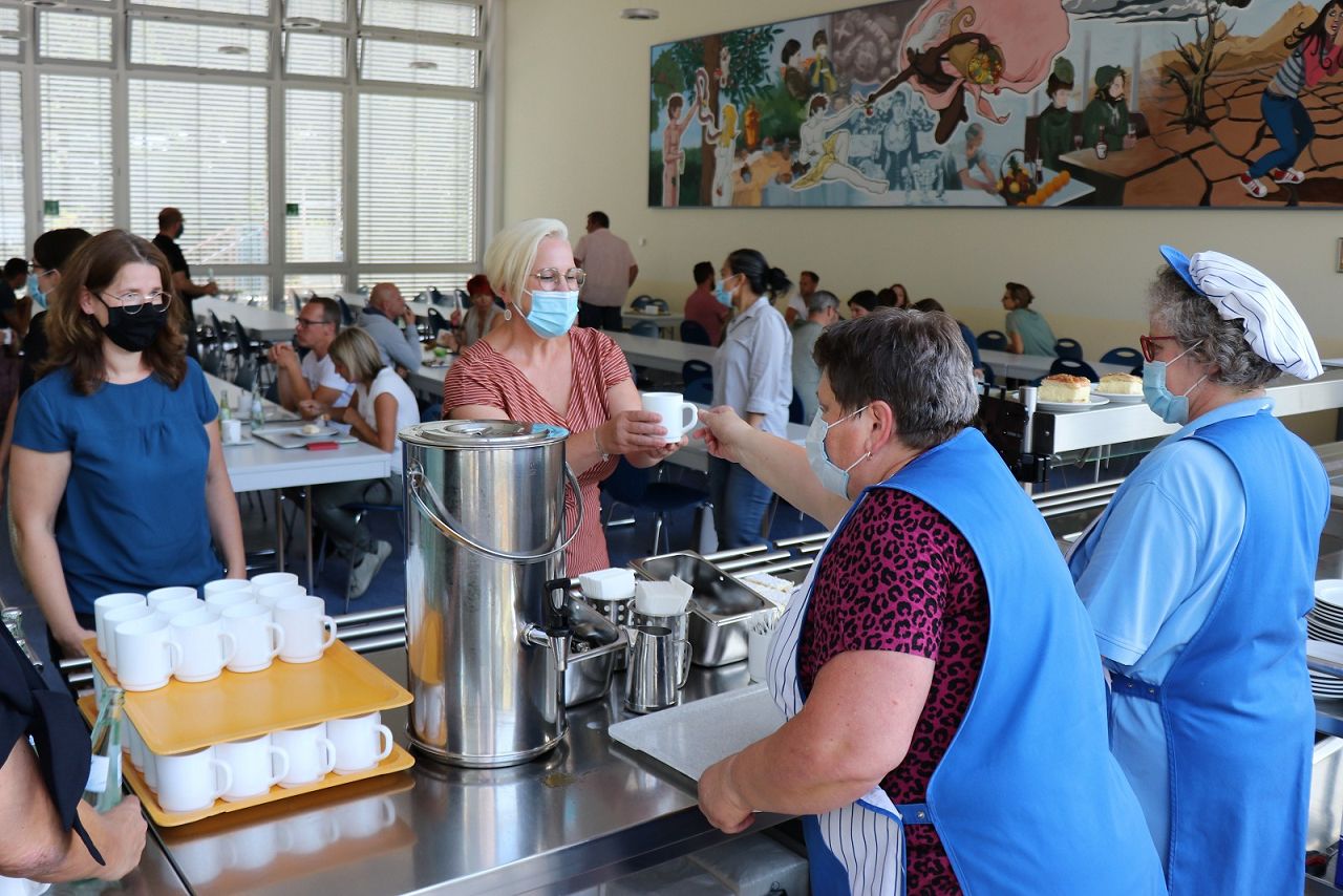 Im Anschluss luden die erste Klassenleiterstunde und ein Schulrundgang dazu ein, die neuen Mitschüler, die Klassenlehrerin Christina Niehl (7a) und den Klassenlehrer Christian Endres (7b) sowie die Besonderheiten der Schule genauer kennenzulernen, während die Eltern vom Förderverein herzlich zum Elterncafé im Speisesaal eingeladen waren.