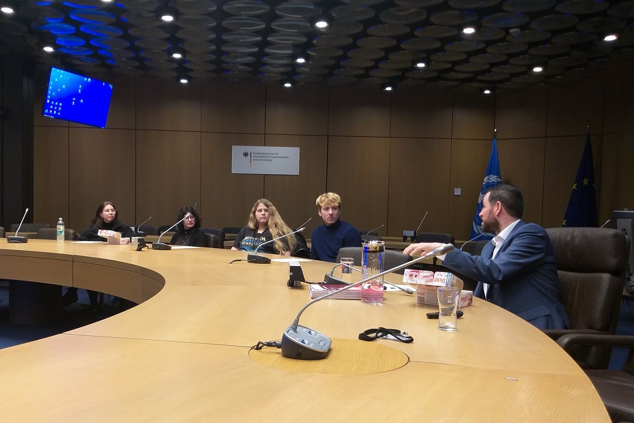 Im Anschluss fand eine gemeinsame Diskussion statt, an der sich die Schülerinnen und Schüler mit vielen Fragen und großem Interesse beteiligten. Hier wurden u.a. Finanzierungsfragen, entwicklungspolitische Schwerpunkte sowie Vorurteile und die (oftmals verkürzte) öffentliche Wahrnehmung von Entwicklungszusammenarbeit thematisiert.