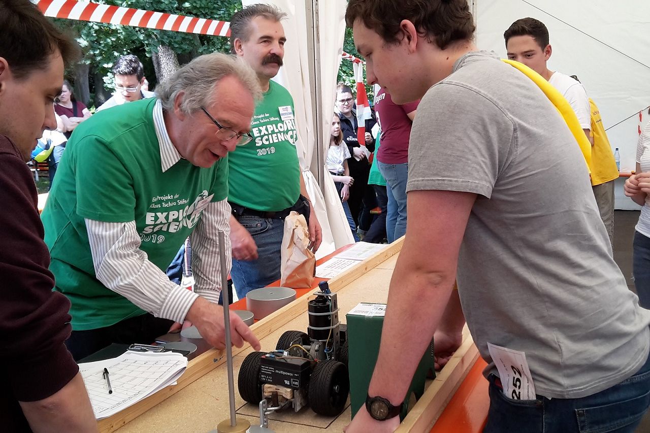 Dieses Mal faszinierten gleich mehrere der gestellten Wettbewerbsaufgaben unsere Schülerinnen und Schüler. Im Rahmen der Physik AG unter der Leitung von Norbert Ames und Susanne Paulus entstanden so ein „erdbebensicherer“ Papierturm und ein Traktor, der möglichst schwere Lasten ziehen sollte. Zwei Gruppen aus Schülerinnen und Schülern der Klasse 9b bzw. des Physik-Leistungskurses der Klassenstufe 12 traten schließlich am Mittwoch bzw. am Freitag beim jeweiligen Wettbewerb an. Insgesamt nahmen in diesem Jahr über 800 Teams an den Schülerwettbewerben teil. Neben dem Wettbewerb luden verschiedene Stände von Vertretern von Universitäten und Schulen zum Experimentieren ein und machten den Besuch des Luisenparks zu einem besonderen naturwissenschaftlichen Erlebnis.