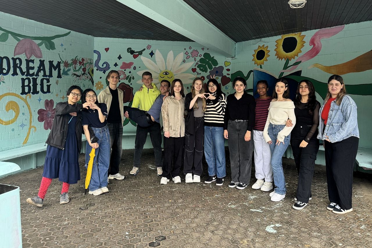 Yaren entschied sich in ihrem Projekt dazu, die Bushaltestelle an unserem Busbahnhof, gemeinsam mit Internatsschülerinnen und Internatsschülern aus unterschiedlichen Nationen, künstlerisch neu zu gestalten. Das Besondere dieses Vorhabens war die gelungene Kombination aus Kreativität und gelebter Integration. Dass dieses Projekt den Beteiligten großen Spaß machte, können die Bilder der jungen Künstler bezeugen. Die Ausführung erfolgte in Zusammenarbeit mit dem Stadtbürgermeister der Stadt Neuerburg, Lothar Fallis, der auch die benötigten Materialien bereitstellte. Yaren stellte mit dieser Maßnahme ihre eigenverantwortlichen Projektmanagementfähigkeiten zum Abschluss ihres Anerkennungsjahres unter Beweis!
