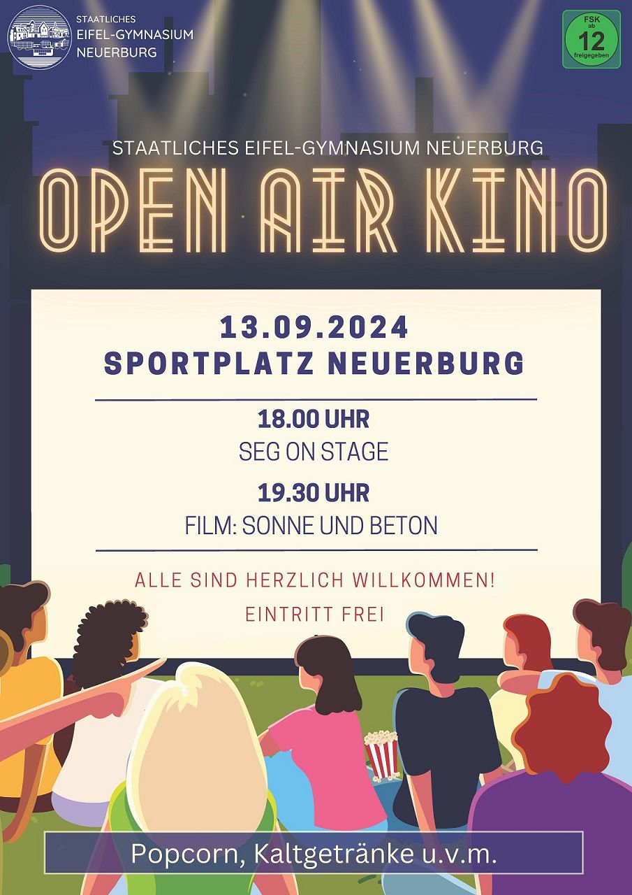 Nicht nur unsere Schulgemeinschaft, sondern die gesamte Bevölkerung Neuerburgs und Umgebung ist herzlich eingeladen, diesen besonderen Abend mit uns zu verbringen und bei Popcorn und Kaltgetränken in die Welt Hollywoods einzutauchen. Alle Filmliebhaber erwartet ab 18:00 Uhr unter dem Motto “SEG on stage” ein buntes Bühnenprogramm, bevor es um 19:30 Uhr mit dem Kinofilm losgeht.