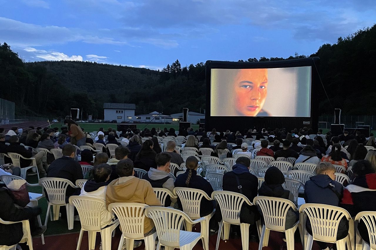 Popcorn-Geruch lag in der Luft, als die Kinobesucher am Abend den Sportplatz in Neuerburg betraten und die große Leinwand bestaunten, die Dank Westenergie mitten auf dem Fußballfeld gen Himmel ragte. Doch bevor es hieß „Film ab!“ wurden die Gäste mit einem bunten Bühnenprogramm unterhalten. Im Rahmen von „SEG on stage“ präsentierten Arbeitsgemeinschaften mit Schülerinnen und Schülern aus allen Jahrgängen ihr musikalisches und tänzerisches Können: Neben Klängen aus Disneys „Vajana“ und John Legends „All of me“ (Gesangs-AG) präsentierte die Schulband auch Rocklieder wie „Zombie“ oder „Time is running out“, bevor die Tanzgruppe des Internats die Zuschauer mit dynamischen Rhythmen und passenden Schritten begeisterte. Auch „Der König der Löwen“ und Afrika erhielten Einzug durch die Tanz-AG und wurden abgelöst durch Jens Kemper, der sogar seine neueste Single „Zwischen Wahnsinn und Vernunft“ im Gepäck hatte und erstmalig darbot.