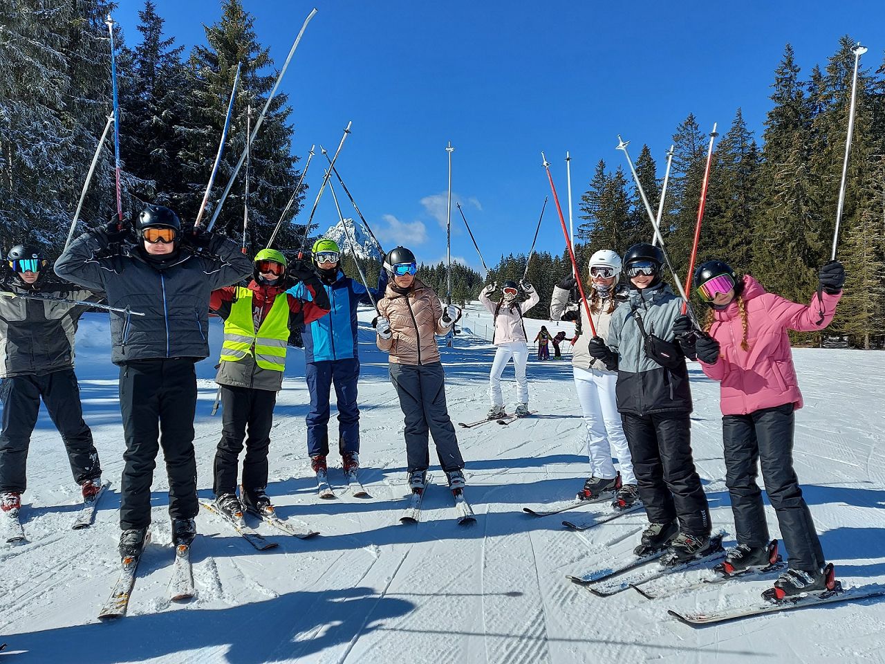 Nicht nur das gemeinsame Überwinden steiler Hänge, sondern auch das Abendprogramm stärkte das Gemeinschaftsgefühl der Gruppe und machte den Integrationsprozess unterschiedlicher Nationalitäten spürbar. So war es auch in diesem Jahr wieder für einige Schüler das erste Mal, dass sie das glitzernde Weiß erlebten, um dabei nicht nur sportliche, sondern eben auch sprachliche Herausforderungen zu meistern und gesellschaftliche Stereotype abzubauen. Den Höhepunkt der abendlichen Aktivitäten stellte die traditionelle Skitaufe dar, bei der die alten „Ski-Hasen“ die Anfänger symbolisch in die Welt des Skifahrens einführten.
