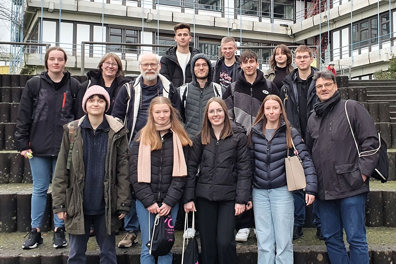 Nach einer zweistündigen Fahrt wurden die Schülerinnen und Schüler der Jahrgangsstufen 8-13 herzlich vom Dekan des Fachbereichs Physik im Audimax der technischen Universität Kaiserslautern persönlich empfangen.