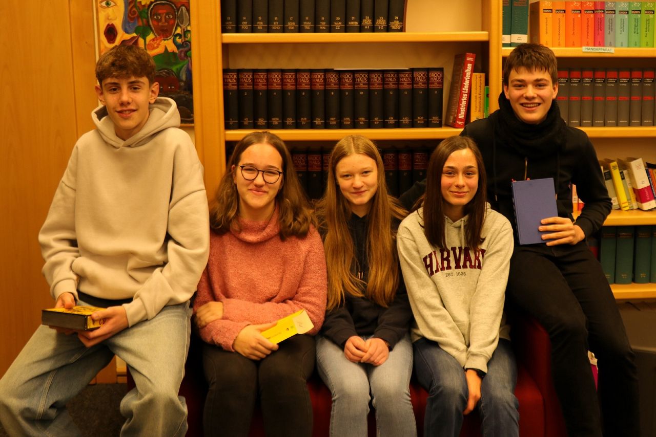 Sie überzeugten dabei mit herausragenden Leistungen und zeigten ein hohes Maß an Vorlesekompetenz, sodass die Jury am Ende vor die Qual der Wahl gestellt wurde, welche Erstplatzierten mit einem kleinen Gutschein belohnt werden sollten. Dabei setzte sich Nils Zschiesche (10b) als bester Leser des Tages vor Noah Maquil (9a) und Emelie Heyen (10b) durch. Platz vier ging an Anni Neyses (9a) und Platz fünf an Joyce Faber (9b). Alle fünf Bestplatzierten erhielten außerdem eine Ausgabe des Werkes „Feuerwanzen lügen nicht“ von Stefanie Höfler – ein Roman über eine phänomenale Freundschaft, die von Vertrauen, Verletzlichkeit und Mut erzählt.