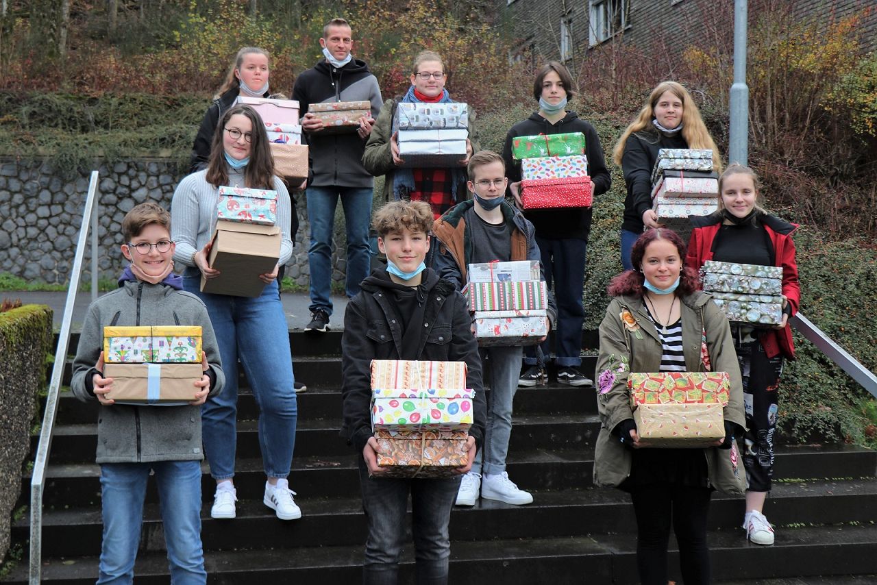 Am 16. November übergab die Schülervertretung die gesammelten Päckchen einer der vielzähligen Abgabestellen in Bitburg und ist stolz darauf, wieder getreu dem Motto „Wir für andere“ gehandelt zu haben.