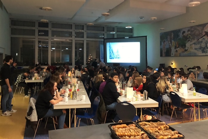 Festlich geschmückt und mit einem leichten Duft nach Plätzchen und Winterpunsch hieß der Speisesaal am Dienstagabend alle Gäste zur alljährlichen Weihnachtsfeier des Internats willkommen. Die Bewohner des Internats, Erzieher, Reinigungskräfte, Küchenpersonal, Ehemalige, Lehrkräfte und Leiter waren zahlreich erschienen, um in geselliger Runde den Alltagsstress hinter sich zu lassen und sich kurz vor Weihnachten auf das bevorstehende Fest einzustimmen. Charmant begrüßten die Moderatoren Gabriela Igelmund und Adam von Fragstein alle Anwesenden und führten, nach den Grußworten von Dr. Jens Kemper, durch den Abend. Dabei wurde ein vielfältiges Programm geboten, welches die Internatler auf die Beine gestellt hatten: Ob musikalische Einlagen von Solisten oder dem Kammerchor, eine politische Satire, selbst verfasste und inszenierte Texte sowie eine Präsentation zu Impressionen des Internatslebens – die Zuhörer lobten die Darbietungen mit herzlichem Applaus.