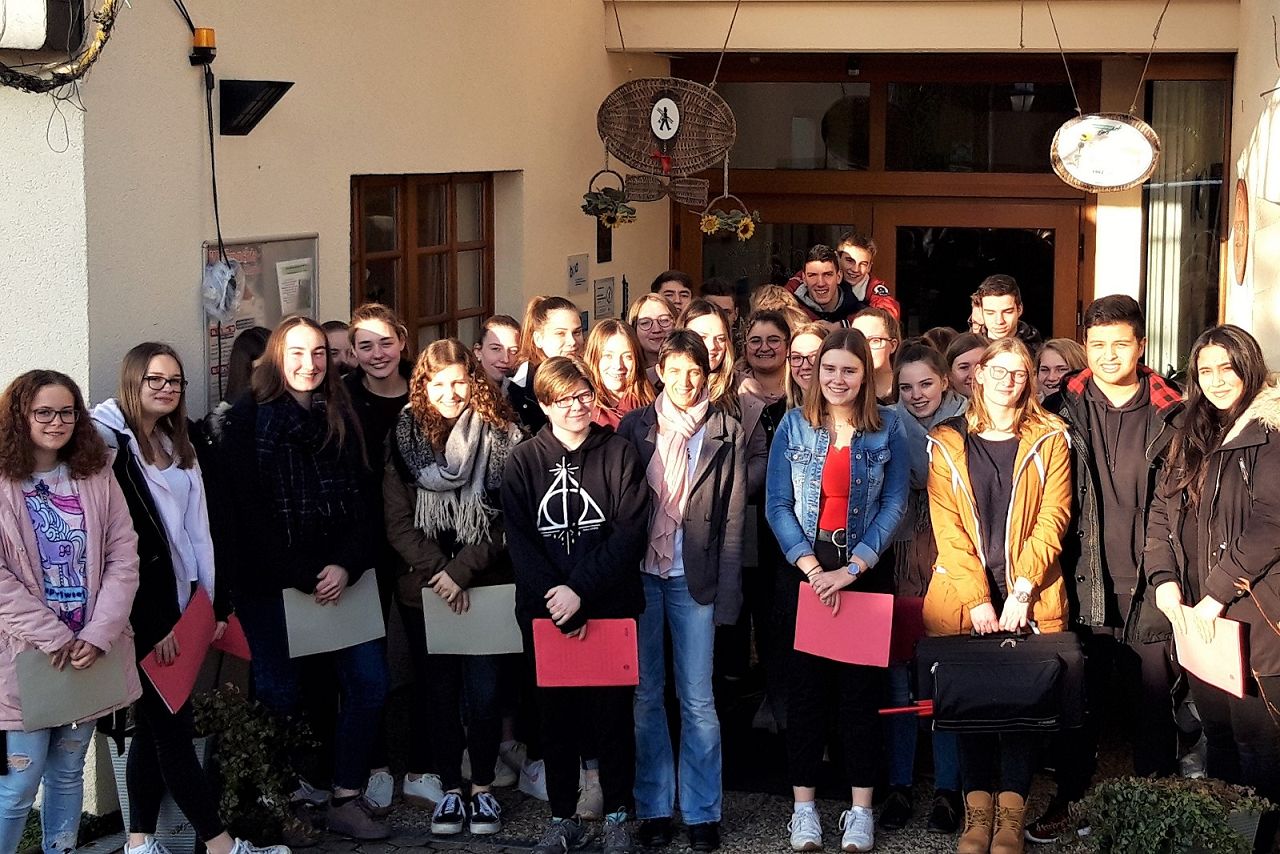 Die 40 Schülerinnen und Schüler des Schulchores sowie eine kleine Instrumentalgruppe besuchten am Mittwochnachmittag vor den Weihnachts-Feiertagen die Seniorinnen und Senioren auf dem Plascheiderberg und versetzten das Seniorenheim „Berghof“ in vorweihnachtliche Stimmung. Mit festlicher Kammermusik sowie deutschen und europäischen Weihnachtsliedern gestalteten die Schülerinnen und Schüler unter der Leitung von Dorothea Nusbaum eine Stunde der Besinnung und der Vorfreude auf das bevorstehende Weihnachtsfest. Die Bewohnerinnen und Bewohner des Seniorenheims dankten den Akteuren mit kräftigem Applaus und sangen bei den bekannten Liedern auch gern mit.